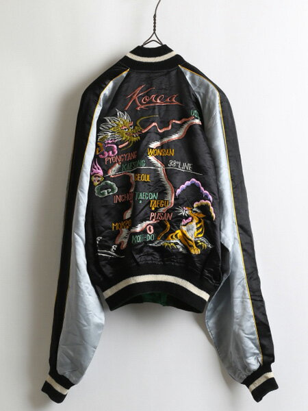 コリア 龍 虎 刺繍 リバーシブル サテン スーベニア ジャケット スカジャン ( メンズ 男性 XS〜S程 ) 50年代 ビンテージ 古着 商品説明50年代頃の朝鮮戦争のスカジャンです。