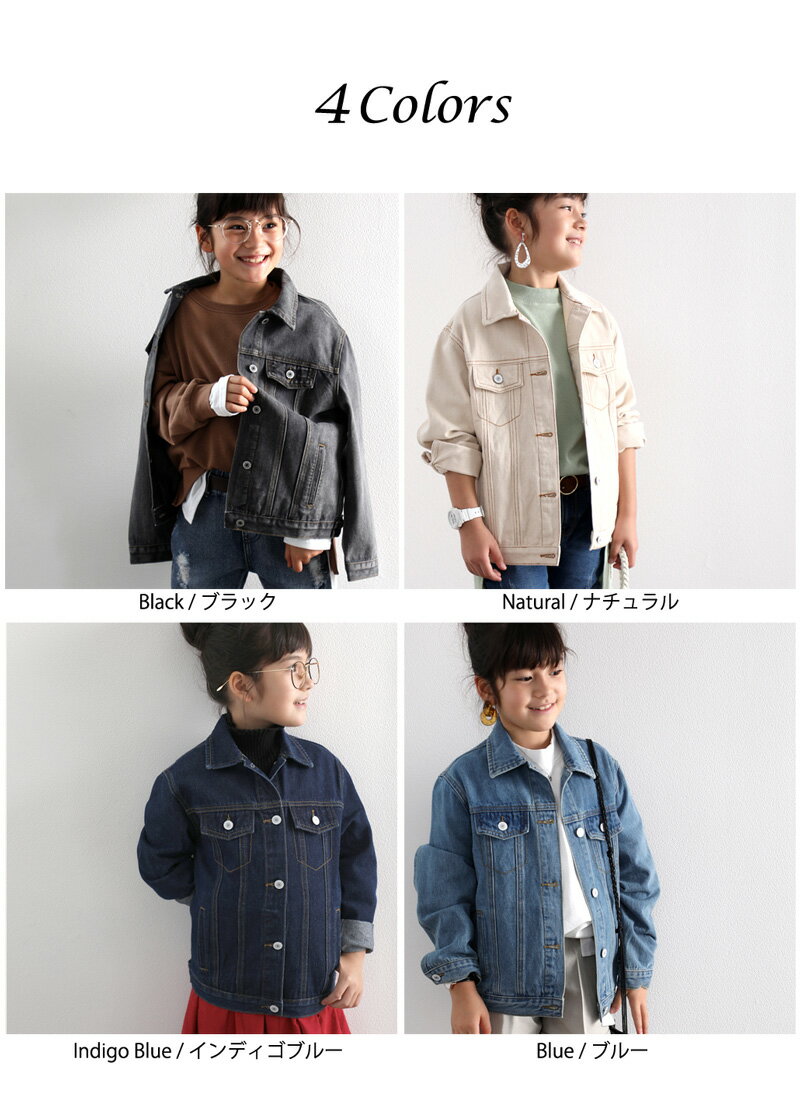 メーカー希望小売価格はメーカー商品タグに基づいて掲載しています→コチラ! メール便送料無料 キッズ こども 子供服 デニムジャケット ジージャン 羽織り ビッグシルエット 抜き襟 ゆったり おしゃれ 親子コーデ 春 夏 秋 冬 レディース 2021ss classicalelf ブラック ナチュラル インディゴブルー ブルー 黒 青 130 140 150 kcla64013